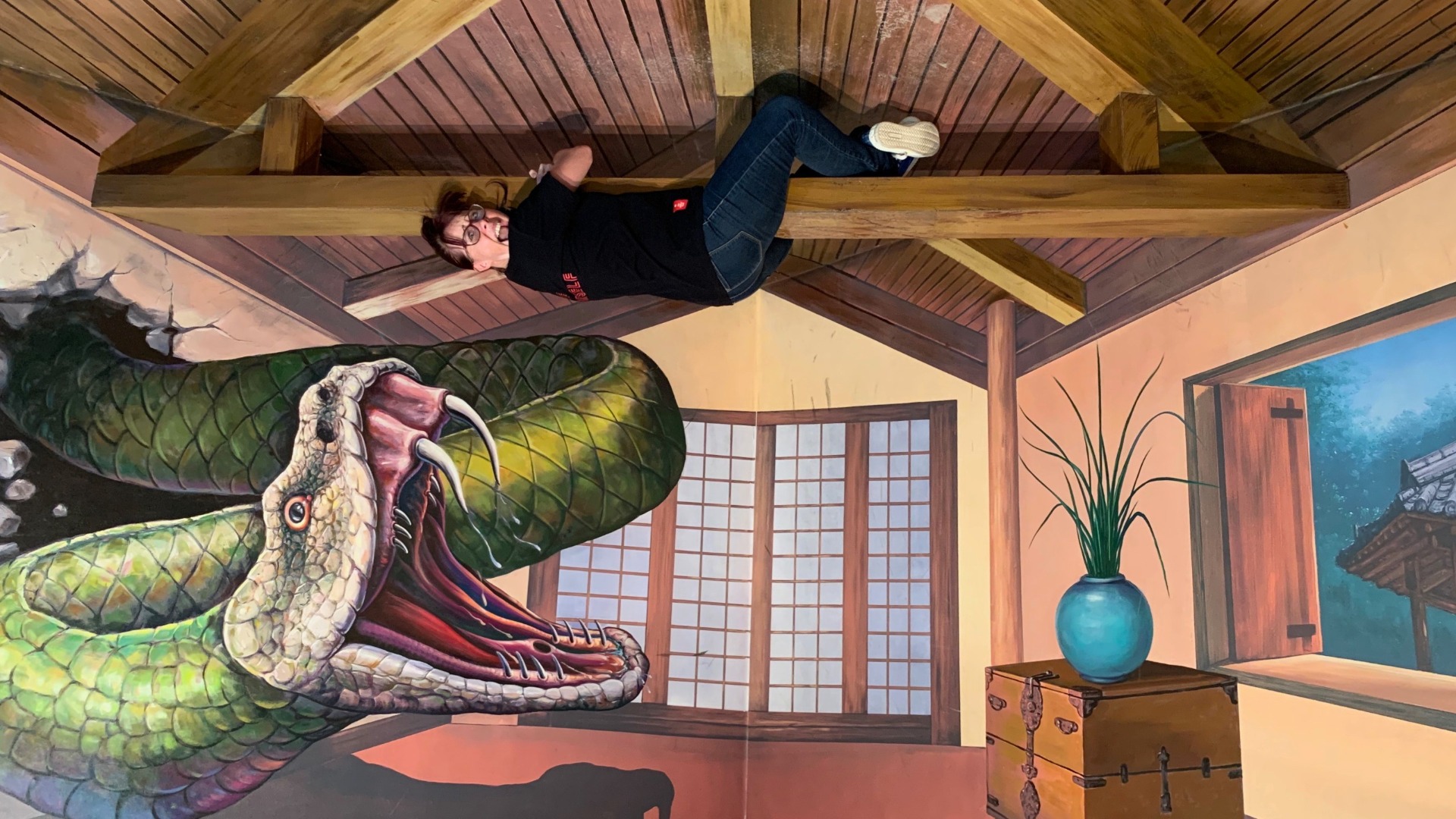 DEN 11. Přesunem z Busanu do Soulu jsme sice unikli největšímu tajfunu, stále však vydatně lilo. V takové dny přemýšlíte, co zábavného podniknout někde pod střechou. Ve městě naštěstí bývá nespočet možností: muzea, galerie, akvária, kina, herní místnosti, nákupní centra s bezednými kelímky atd. atd. My jsme nakonec zvolili Trick Eye Musem.