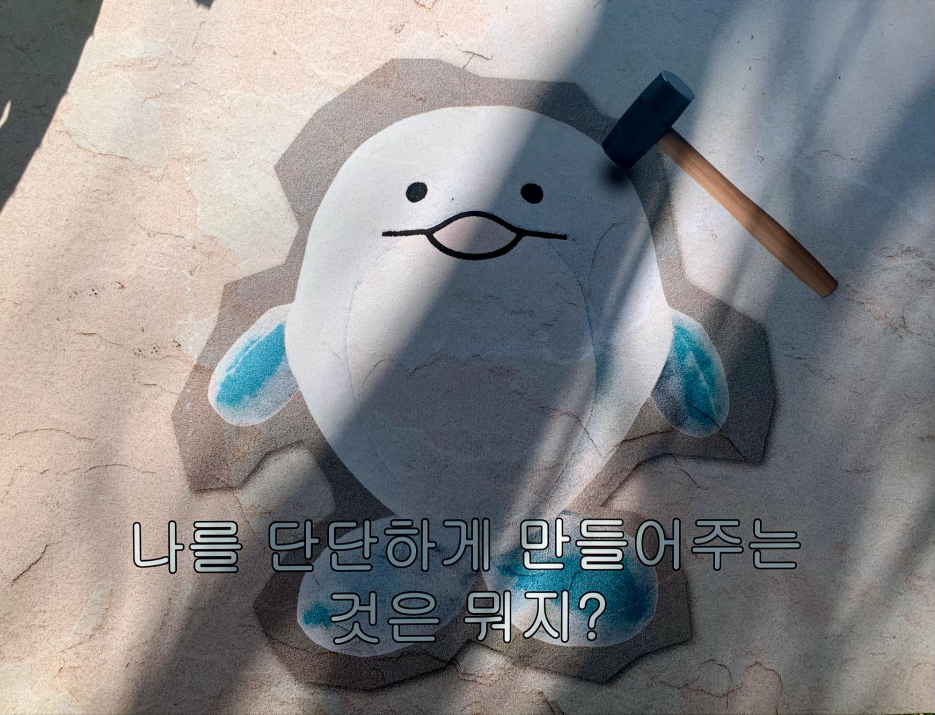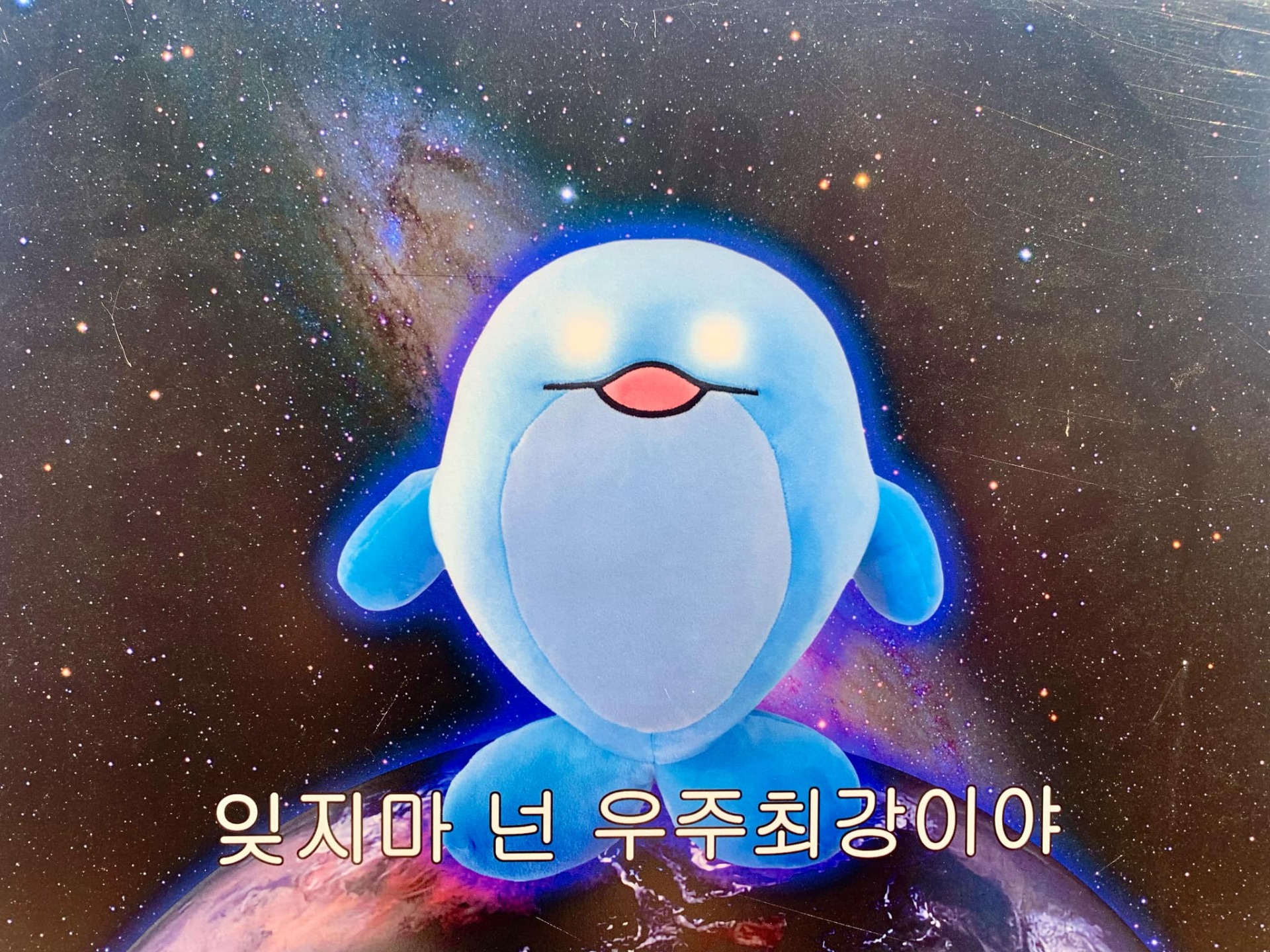 A pak jsme na jedné promenádě u moře poblíž Mokpa objevili pět menších cedulí. Z každé na nás koukala roztomilá plyšová velryba doplněná vždy o slogan v korejštině. Mé paranoidní já nedůvěřivě shlíželo na modrého kytovce… že by nám opravdu jenom zpříjemňoval den pomocí motivačních nápisů? Nevěřím!