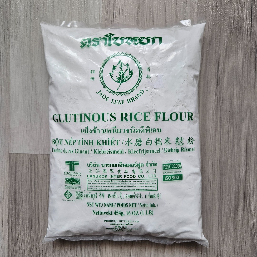 Použití mouky z lepkavé rýže je absolutní nutnost pro výslednou konzistenci těsta. My kupujeme tuto: