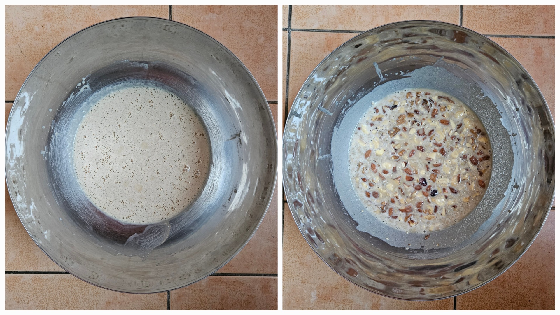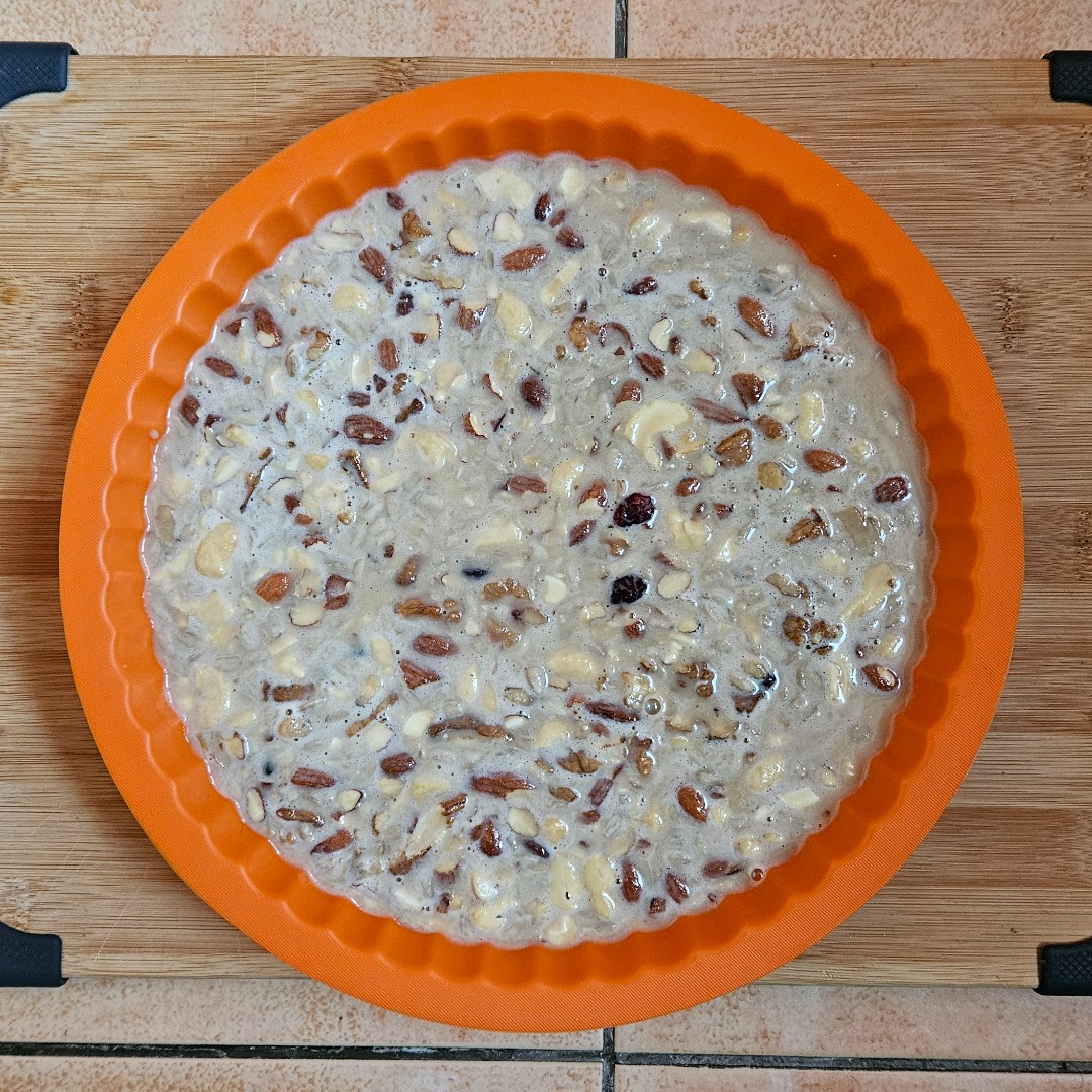 Náplň koláče je spíše záležitostí osobního vkusu. My máme rádi všechny ořechy, takže do koláče dáváme ty, které jsou zrovna doma k dispozici; stejně tak semínka – hodí se slunečnicová, dýňová, lněná. Dejte ale pozor, abyste ze samého nadšení koláč nepřeplnili; obměňujte tak, abyste stále měli cca 6 pevných ingrediencí.