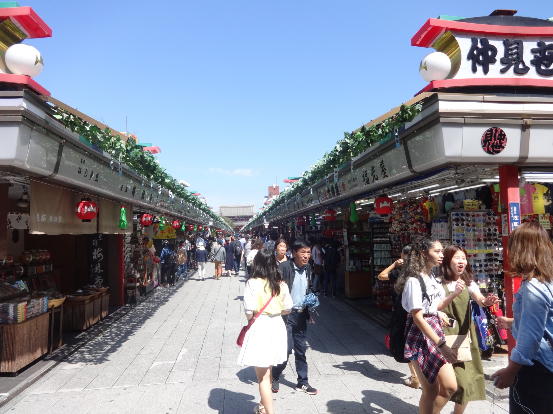 Ke druhé, vnitřní bráně, vede asi 200m dlouhá nákupní ulička Nakamise, kde si mohou návštěvníci koupit tradiční suvenýry.