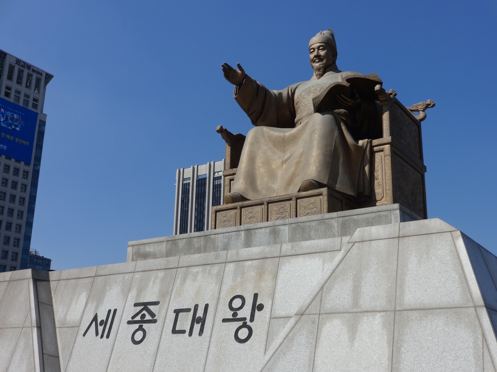 Král Sejong z dynastie Joseon je známý především pro svůj vliv na hospodářský a kulturní rozkvět Koreje. Je považován za zakladatele hangulu, korejského písma, i když on sám jej samozřejmě nevytvořil. Předtím se gramotní lidé vyjadřovali pomocí čínských znaků, jejichž učení bylo dlouhé a obtížné. Sejonga trápilo, že veškerý jeho lid nemá písmo, které by lépe odpovídalo korejskému mluvenému slovu, zadal proto svým vzdělancům (královskému výzkumnému ústavu) úkol vytvořit jednoduchý abecední systém – "takové ty kolečka a čárky". Právě pro jeho jednoduchost jej vzdělaní lidé zprvu nechtěli přijmout a trvalo dlouhá čtyři staletí, než se hangul stal oficiálním písmem administrativních dokumentů.