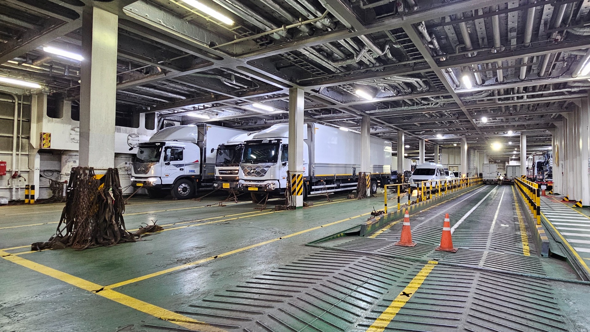 Lodě vyplouvají z Jeju každý den do několika blízkých měst v pevninské Koreji – Wando, Yeosu, Nokdong či Mokpo, a k tomu na vybrané menší ostrovy. My jsme zamířili do Mokpa. Rezervaci lodních lístků jsme provedli na Jeju Ferry Passenger Terminal několik dní dopředu, ale dnes víme, že to není nutné. Loď je opravdu velká (až obří), neumím si představit, co musí nastat, aby její kapacitu plně obsadili. Jen hrubým odhadem pojme kolem 1000 cestujících, něco přes 100 vozidel a vyplouvá 2x denně 6 dní v týdnu (kromě soboty). To je skutečně vysoká frekvence pro klid v duši a pohodlný nákup lístků až v den vyplutí. My jsme si však klid v duši zajistili dříve, v den odjezdu pak už jenom stačilo dojít na přepážku z důvodu výměny rezervace za palubní lístek.