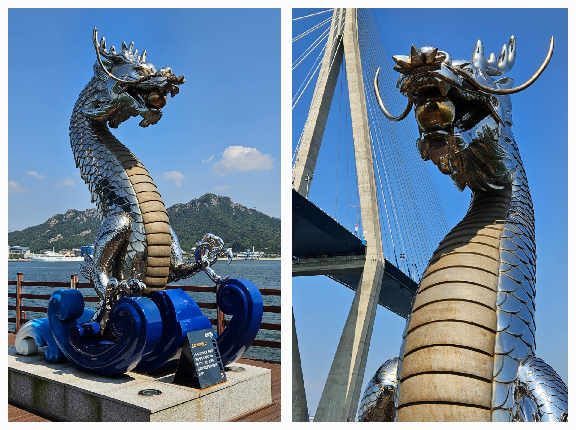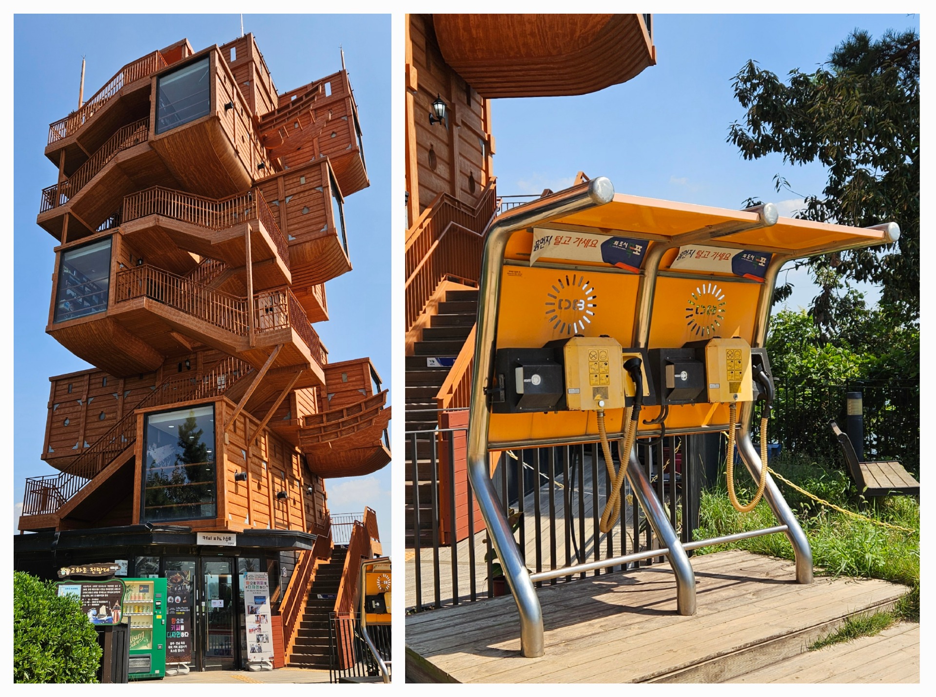 Dominantou ostrova je rozhledna bizarního vzhledu připomínající lodě admirála Yi Sun-shina. Před ní stojí fukary, jež nejčastěji najdete např. poblíž pláží nebo chrámů – slouží k tomu, abyste odfoukali prach ze svých bot; očistili je (u pláží při odchodu, u chrámů při příchodu). Praktická věc, u nás pomocí fukarů odklízíme spadané listí…