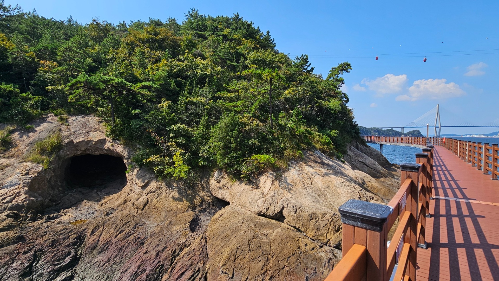 Aspoň že výhledy byly ok, narazili jsme ještě na jednu sochu, pro změnu admirála Yi Sun-shina, a několik ohromných jeskyní. Během druhé světové války je zde vykopali Japonci, aby v nich ukryli své vojenské lodě. Jeskyně měří zhruba 5m na šířku, 3m na výšku a zasahují do hloubky až 18m.