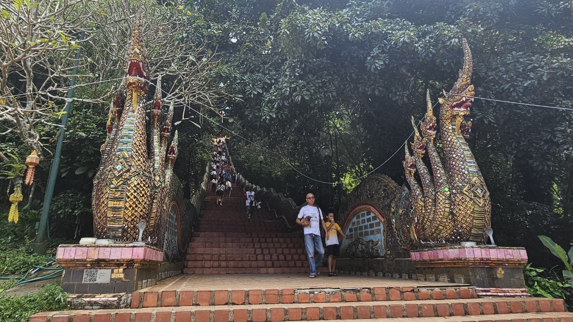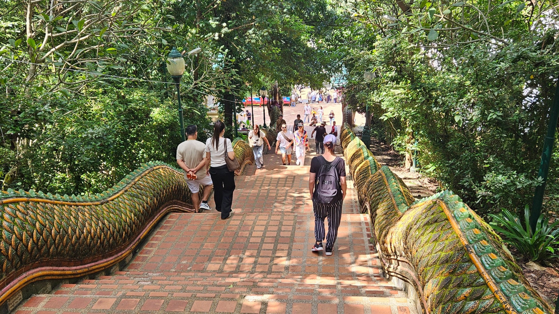 Výstup k samotnému chrámu začíná proslulými "naga stairs" lemovanými po obou stranách těly mýtických hadích bytostí. Při počtu 300 stupínků jde o nejdelší schodištní balustrádu svého typu v celém Thajsku, což je jeden z hlavních faktorů oblíbenosti místa.