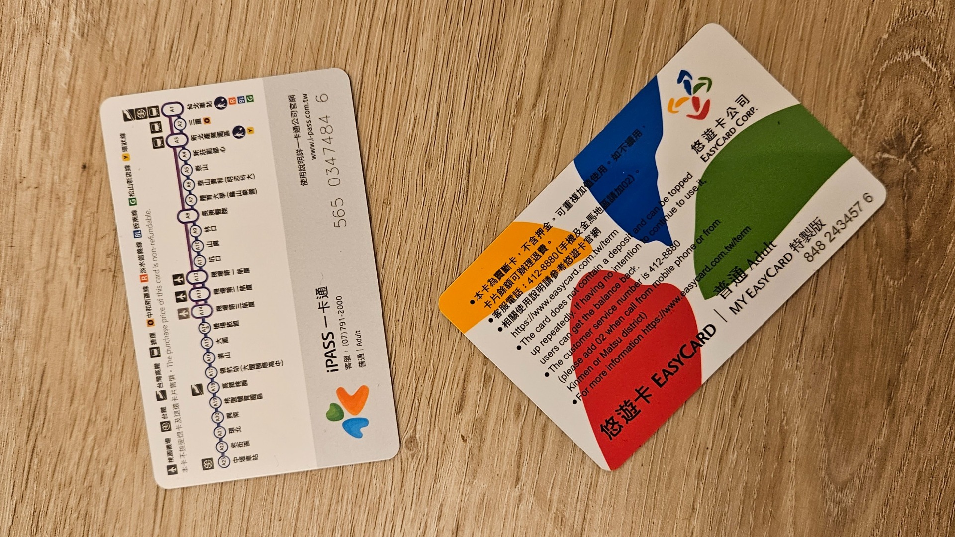 V automatech můžete pořídit EasyCard nebo iPass za 500TWD (taiwanské dolary, momentální přepočet 1TWD je asi 0,75 českých korun) – z toho 100TWD je nevratná záloha a 400TWD je počáteční nabitá částka k volné útratě. Obě kartičky platí po celé zemi a můžete je využít pro platbu v metrech, v autobusech, na některých lodích a lanovkách, v obchodních řetězcích 7-Eleven a Family Mart i v některých automatech s rychlým občerstvením.