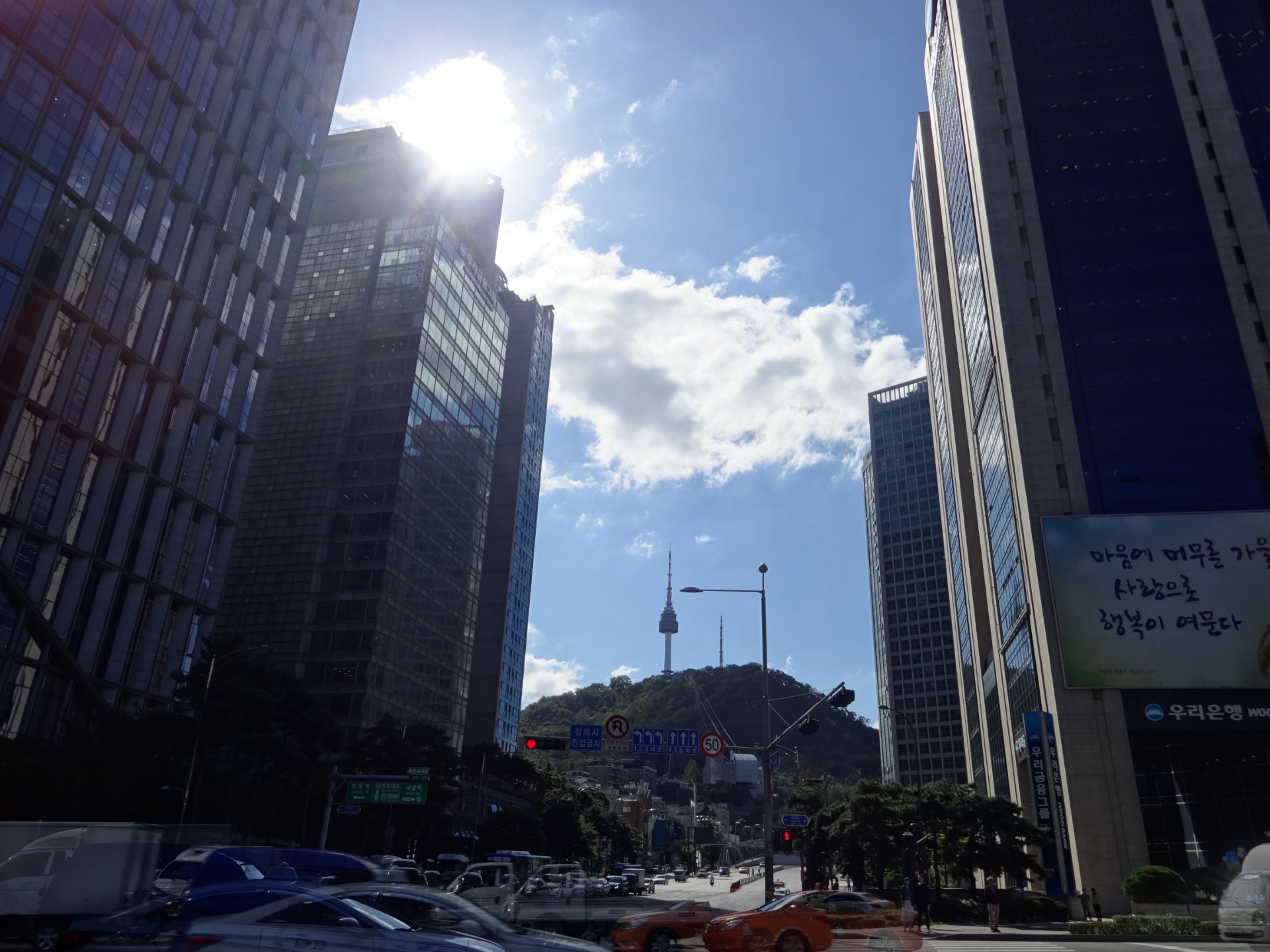 Na fotce vidíme Namsan Tower, bydleli jsme pod kopcem, ale na řadě bude až další den.