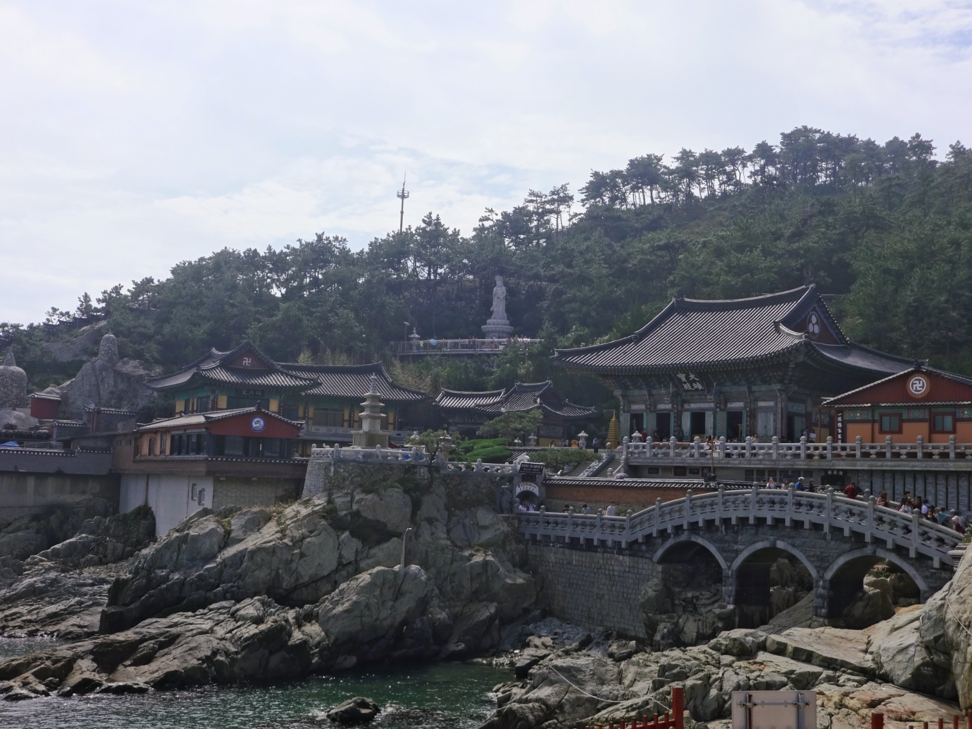 S dovolením bych podotkla, že mi nepřipadal nejkrásnější, ale rozhodně je výjimečný. Zatímco většina chrámů v Jižní Koreji běžně stojí v horách či na úpatí kopců, tento je postaven přímo na březích moře.