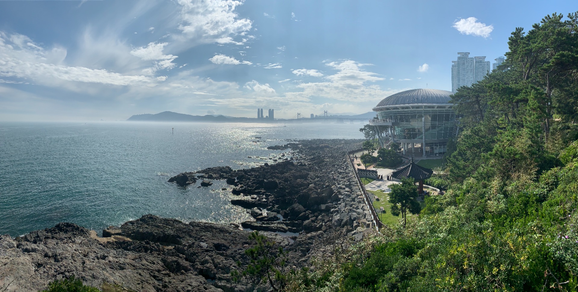 APEC House (Asia-Pacific Economic Cooperation) hostoval v roce 2005 summit 21 zástupců členských zemí, ale aby to nevypadalo, že ho postavili pouze pro tento jediný účel, je krásná prosklená budova využívána k občasným konferencím či banketům a volně průchozí návštěvníkům za účelem prohlídky interiéru (v dáli vidíte Diamond Bridge a pláž Gwanghalli, kde jsme byli o den dříve).