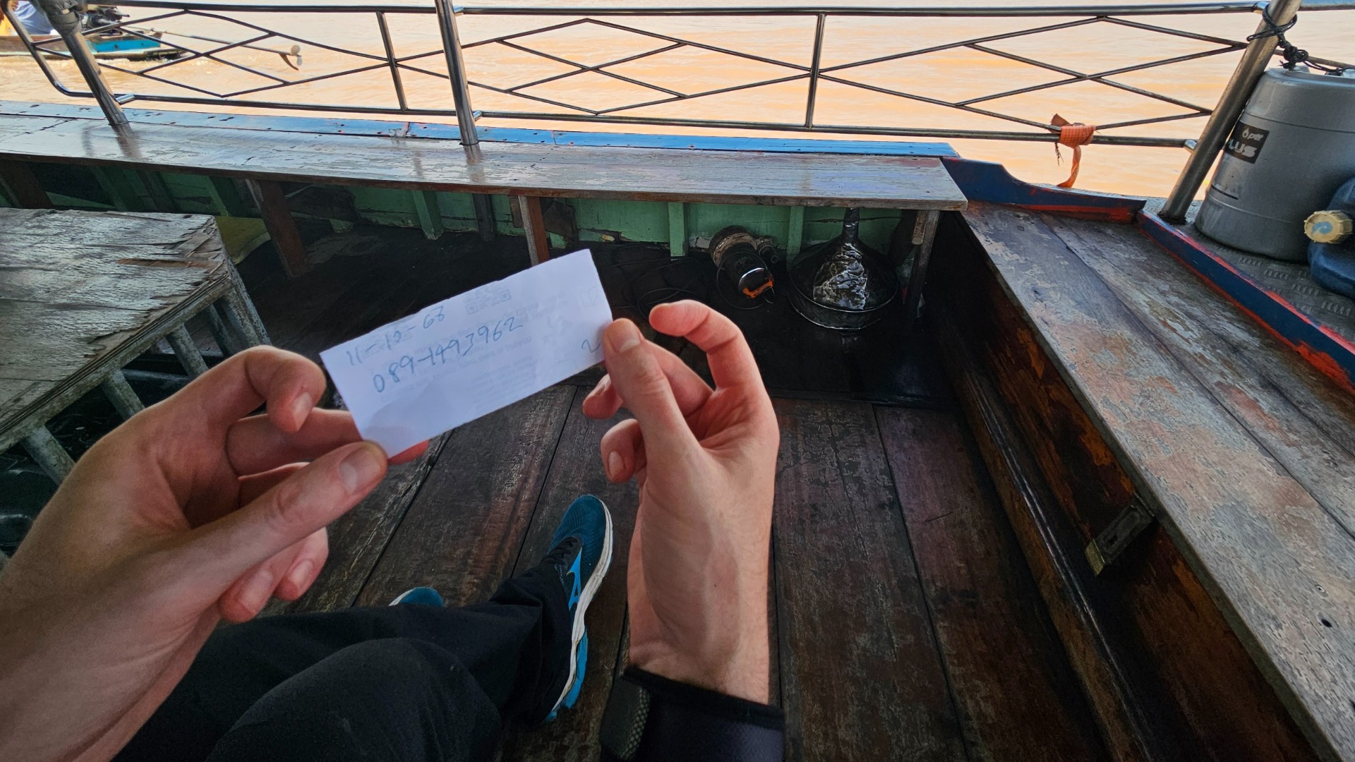 …a ejhle, tehdy přišla řada na palubní lístky! Děda Charón po nás nic nechtěl na cestě tam ani zpět, jen jsme však opustili loď ladným doskokem na molo, zastoupil nám cestu revizor a chtěl vidět platný cestovní doklad. Marek ho předtím schoval spíše coby kuriozitu, ale nyní jsme objevili jeho skutečnou hodnotu.