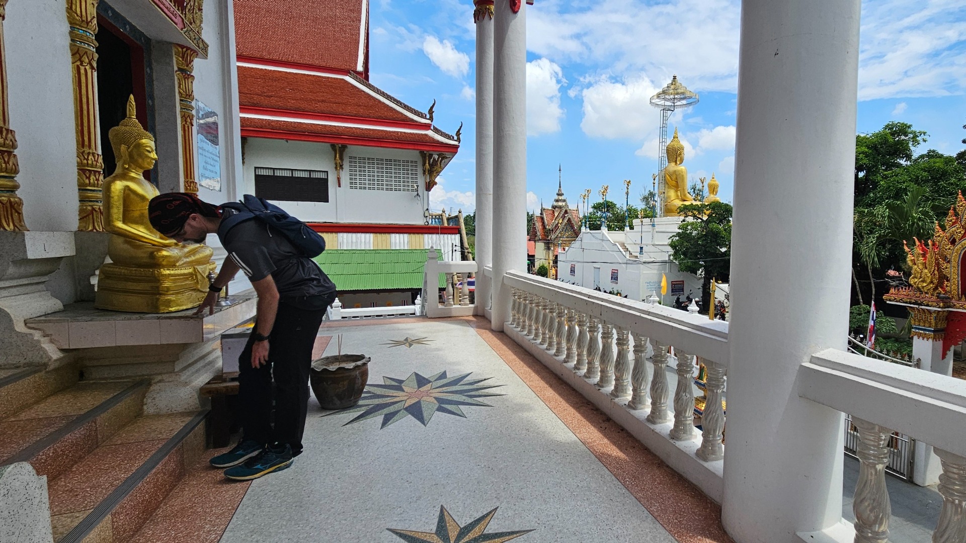 - zouvání před vstupem do chrámů je v mnoha asijských zemích samozřejmost, konkrétně v Thajsku jsme jenom výjimečně narazili na cedule žádající nás o opak, zároveň vždy platí pravidlo NEŠLAPAT na dřevěný práh oddělující vnitřní a venkovní prostor, přechod z obyčejného do posvátného, práh má zadržovat zlé duchy z našeho světa, šlapání na něj jeho funkci oslabuje; malé gesto, ale z pozice turistů vyšle překročení obzvlášť v zapadlejším chrámu signál místním, že o jejich kultuře něco víte a respektujete ji (v České republice je např. slušnost sundat si pokrývku hlavy při vstupu do kostela)