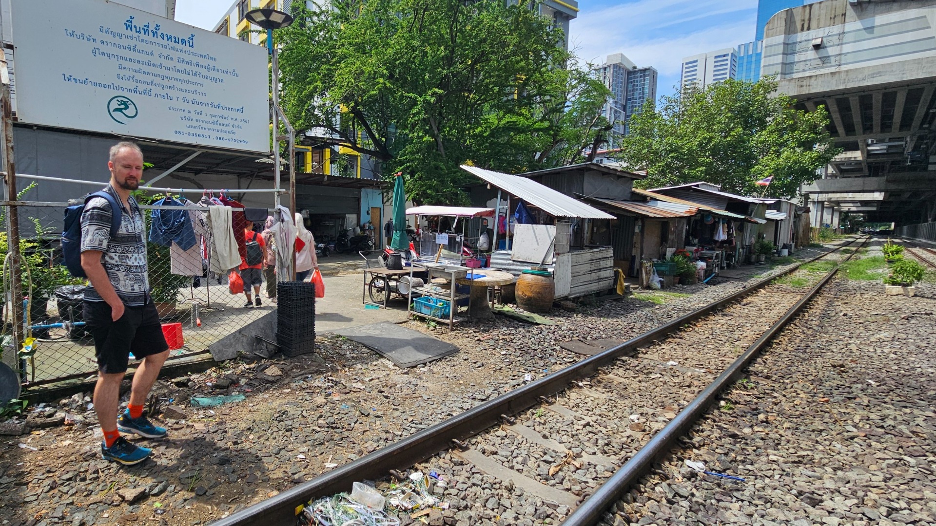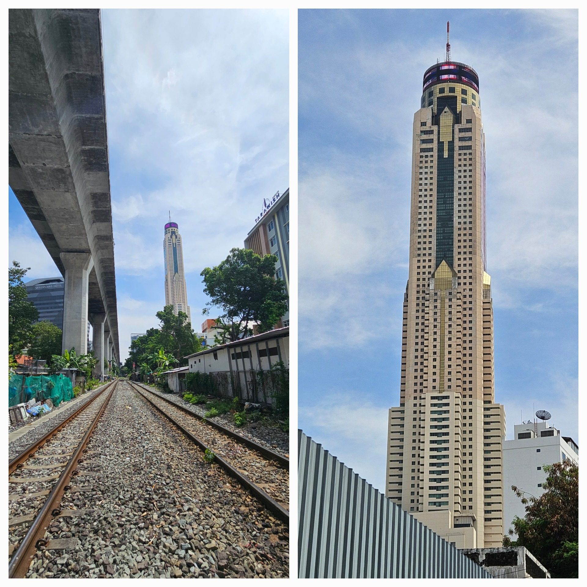 Po jídle jsme nastoupili do metra BTS a vyrazili směrem k Baiyoke Tower, aktuálně třetí nejvyšší budově Bangkoku (po rezidenčních budovách Magnolias Waterfront vedle nákupního centra ICONSIAM a mrakodrapu Mahanakhon). Z nejbližší zastávky to bylo pořád přes kilometr pěšky, navíc v nějaké chudinské čtvrti, která přecházela ve čtvrť indickou, a kdyby nás nějaká muslimská rodina nepřevedla tajnou stezkou přes koleje, určitě bychom bloudili mnohem déle.