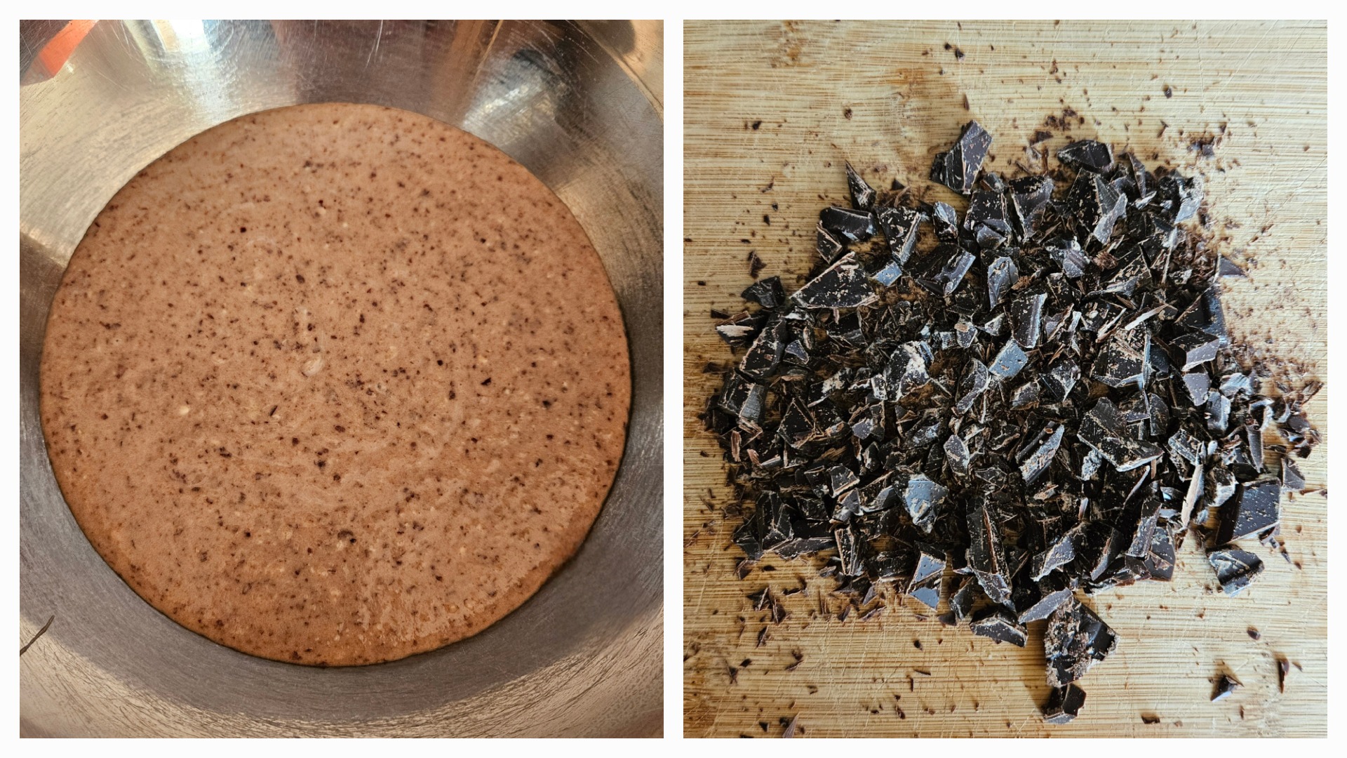 Přesuňte těsto do mísy a zamíchejte do něj nasekanou hořkou čokoládu.