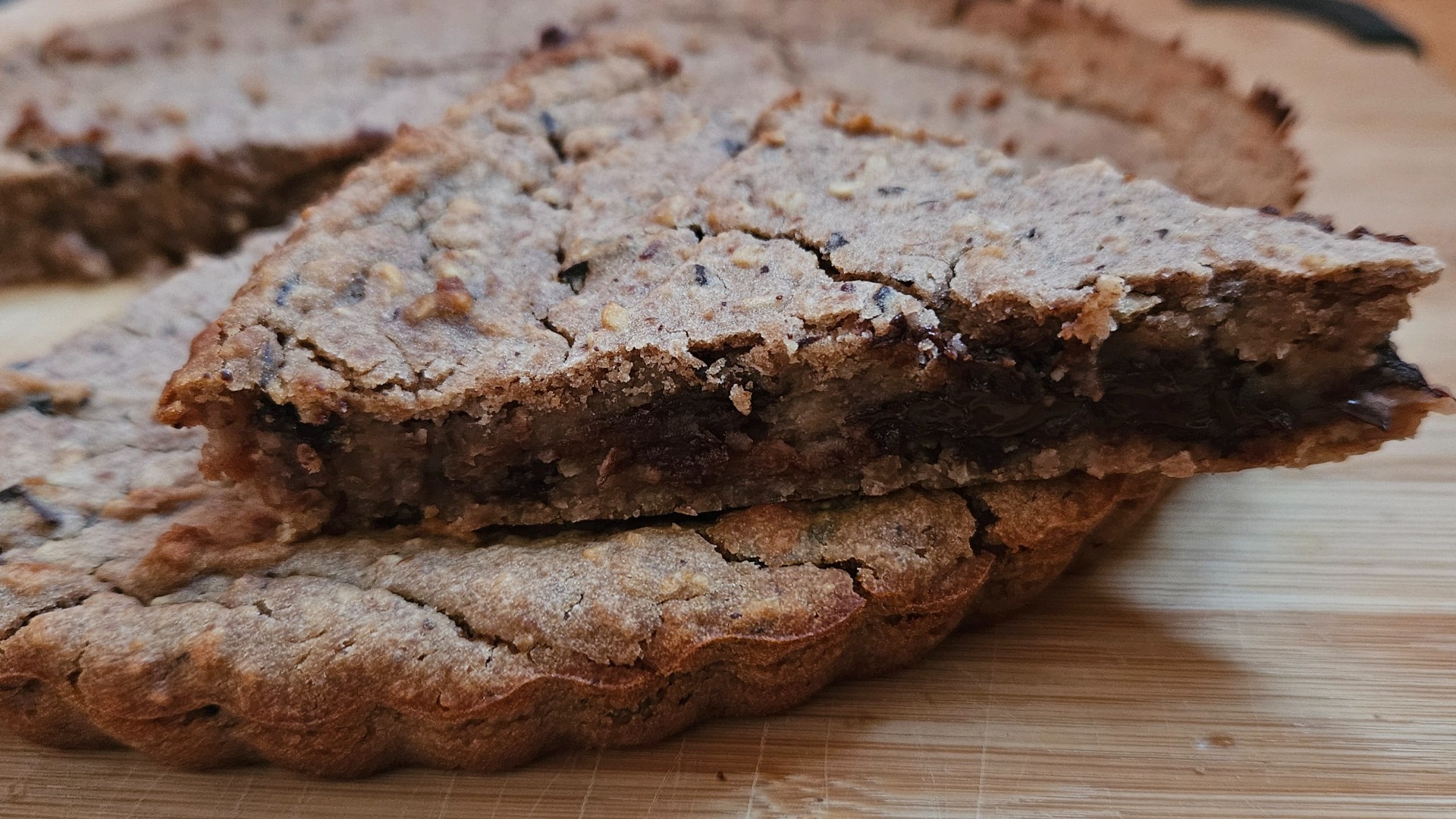 Po vytažení z trouby je koláč pořád měkký a trochu nafouklý, ale za chvíli splaskne a těsto dostane hutnější strukturu. Nechejte jej tedy alespoň hodinu vychladnout a poté nakrájejte a podávejte.