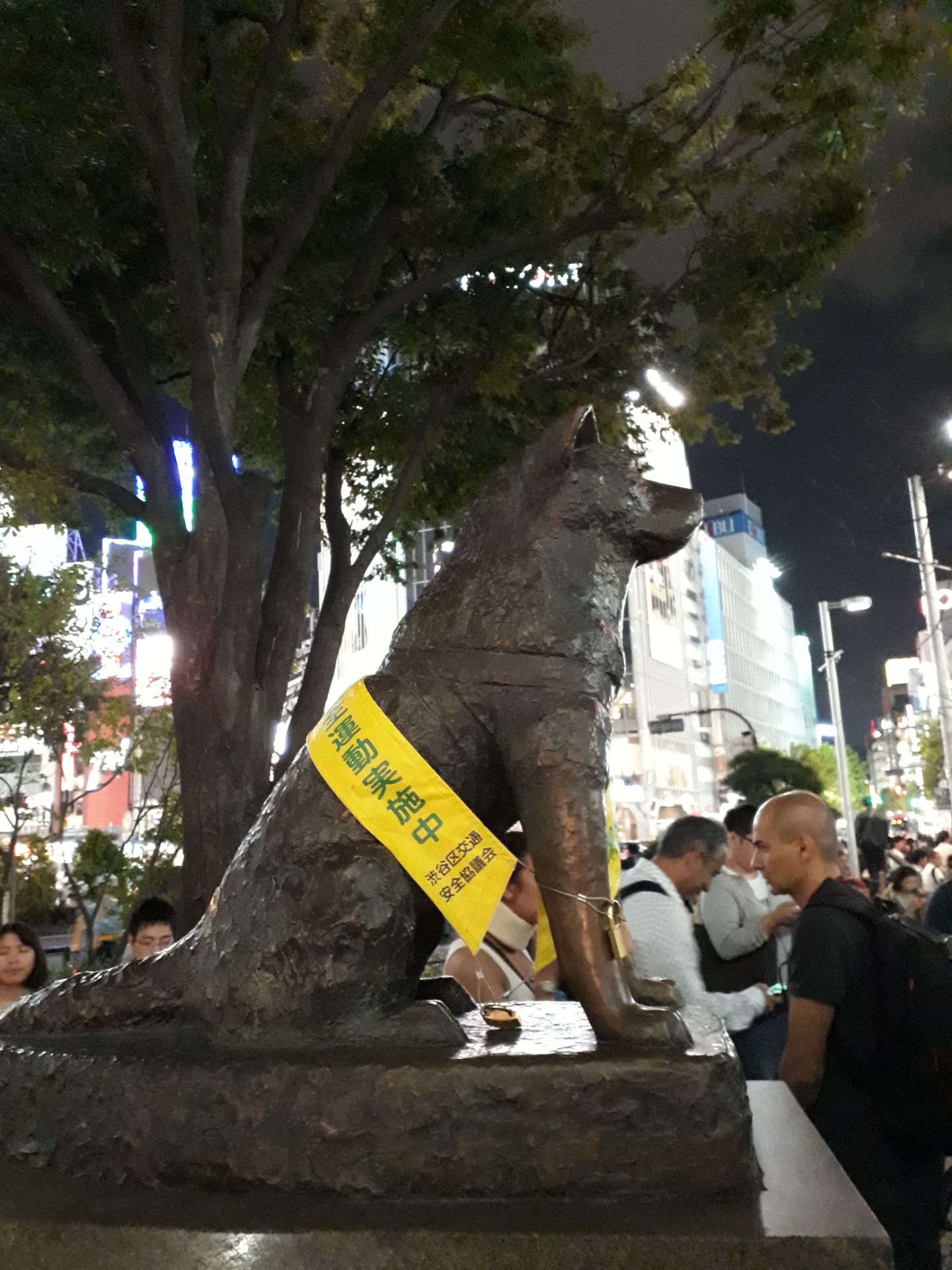 Závěrem psí speciál. Před hlavním východem z metra Shibuya stojí socha Hačikó, psa plemene Akita Inu. Příběh Hačika patří k milovaným japonským urban stories; spojuje v sobě lásku, oddanost a roztomilého pejska. Majitelem Hačika byl profesor na Tokijské univerzitě. Hačikó jej každý den doprovázel do práce a čekal na jeho návrat na stanici Shibuya. V roce 1925 muž zemřel a Hačika se ujali nejprve profesorovi příbuzní a poté jeho zahradník. Hačikó ovšem neustále utíkal z domu a chodil čekat na svého páníčka na Shibuyu. A dělal to tak dalších 9 let.