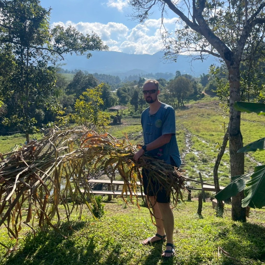 Pán neurčitého věku pocházel z jednoho místního horského kmene a provedl nás přírodní stezkou podél rýžových polí, jahodových farem, kávových plantáží... – vše v produkci drobných místních zemědělců.