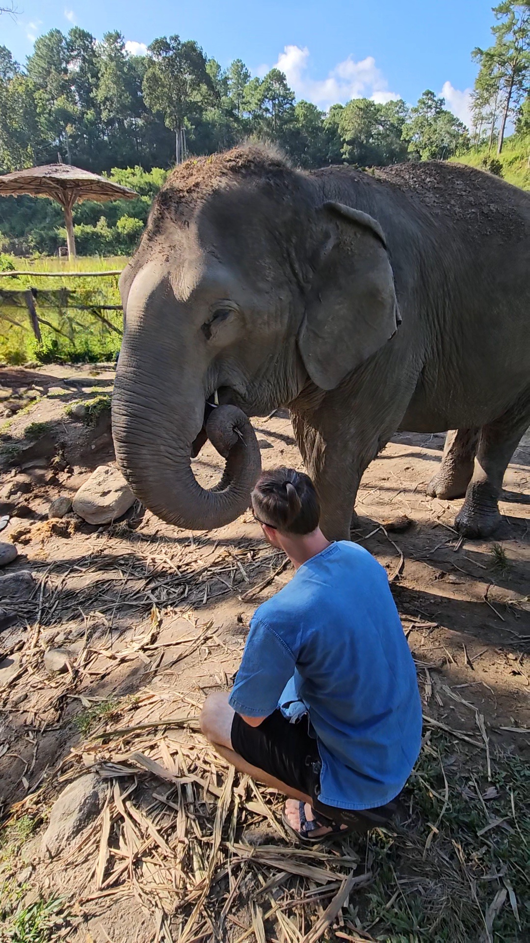 - koupání se slony probíhá nepřekvapivě tak, že vy a sloni v jedné řece jste, v prospektech sice píšou, že pokud sloni do vody nechtějí, nebudou je ošetřovatelé nutit, ale na místě jsme viděli, že je tam stejně natlačili, z pozice organizátorů "chápu", že chtějí, ať mají turisté pěkné fotky/zážitky, proto přijeli, za to platí (na thajské poměry vůbec ne málo, naopak), a tyto peníze živí nejen administrativu v kanceláři, řidiče, ošetřovatele, veterináře..., ale na konci dne i slony včetně rozšiřování výběhů, stád, výchovy mláďat... špatně se hledá rovnováha ve světě, kdy by (nejen) tito sloni ve volné přirodě umřeli, a pokud jim mají pomáhat lidé, tak i ti chtějí přežít a vydělat si na další den, vyjma koupání, které nemusí být vždy dobrovolné (ošetřovatel prostě slona nasměroval do vody), žijí sloni způsobem co nejvěrnějším svobodné existenci ve volné přírodě (s dohledem člověka zajišťujícího potravu a zdravotní ošetření, je-li třeba)