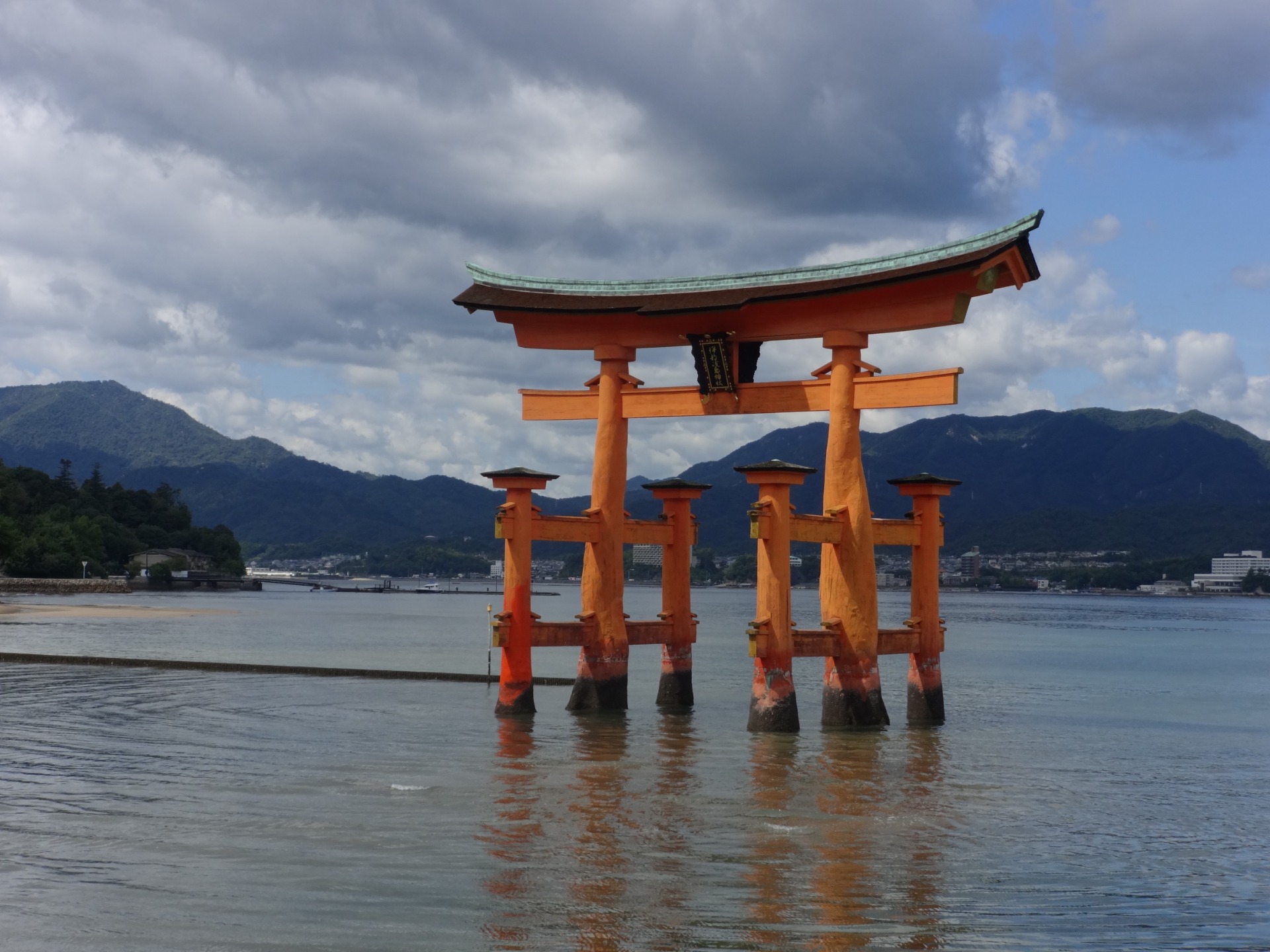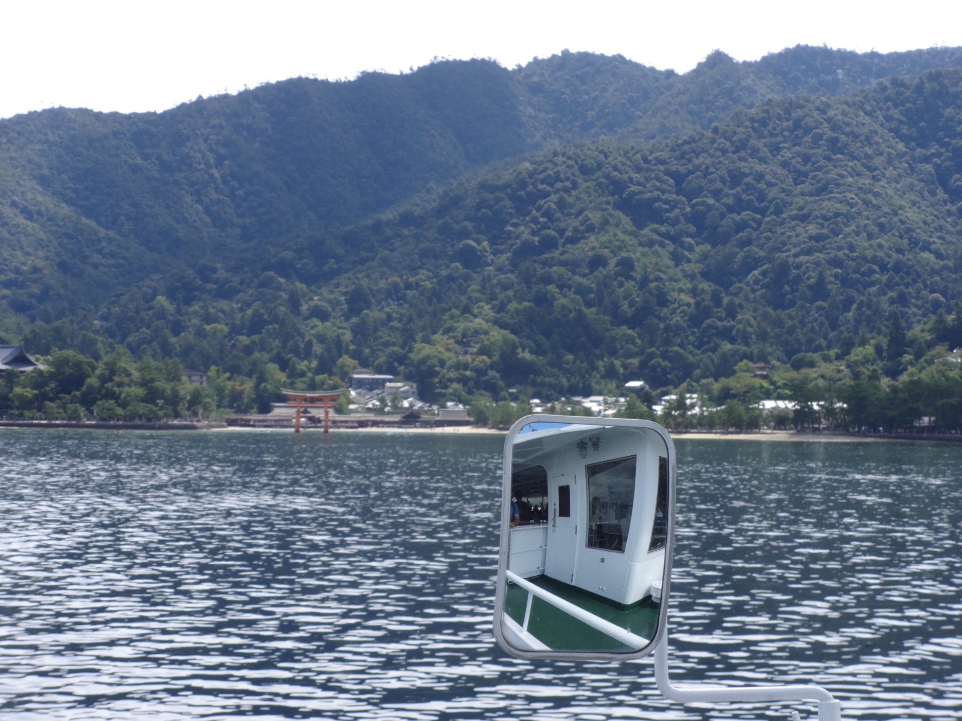 Pravé jméno ostrova je Itsukushima, přezdívka Myiajima v japonštině doslova znamená "Shrine Island" (Ostrov svatyní). Stejné jméno má i svatyně na jeho pobřeží zasvěcená třem bohyním moří a bouří. Vstup na ostrov symbolicky střeží ikonická červená "plovoucí" brána torii. Během odlivu k ní mohou lidé dojít suchou nohou, za přílivu naopak vypadá, jako by se vznášela na vodě.