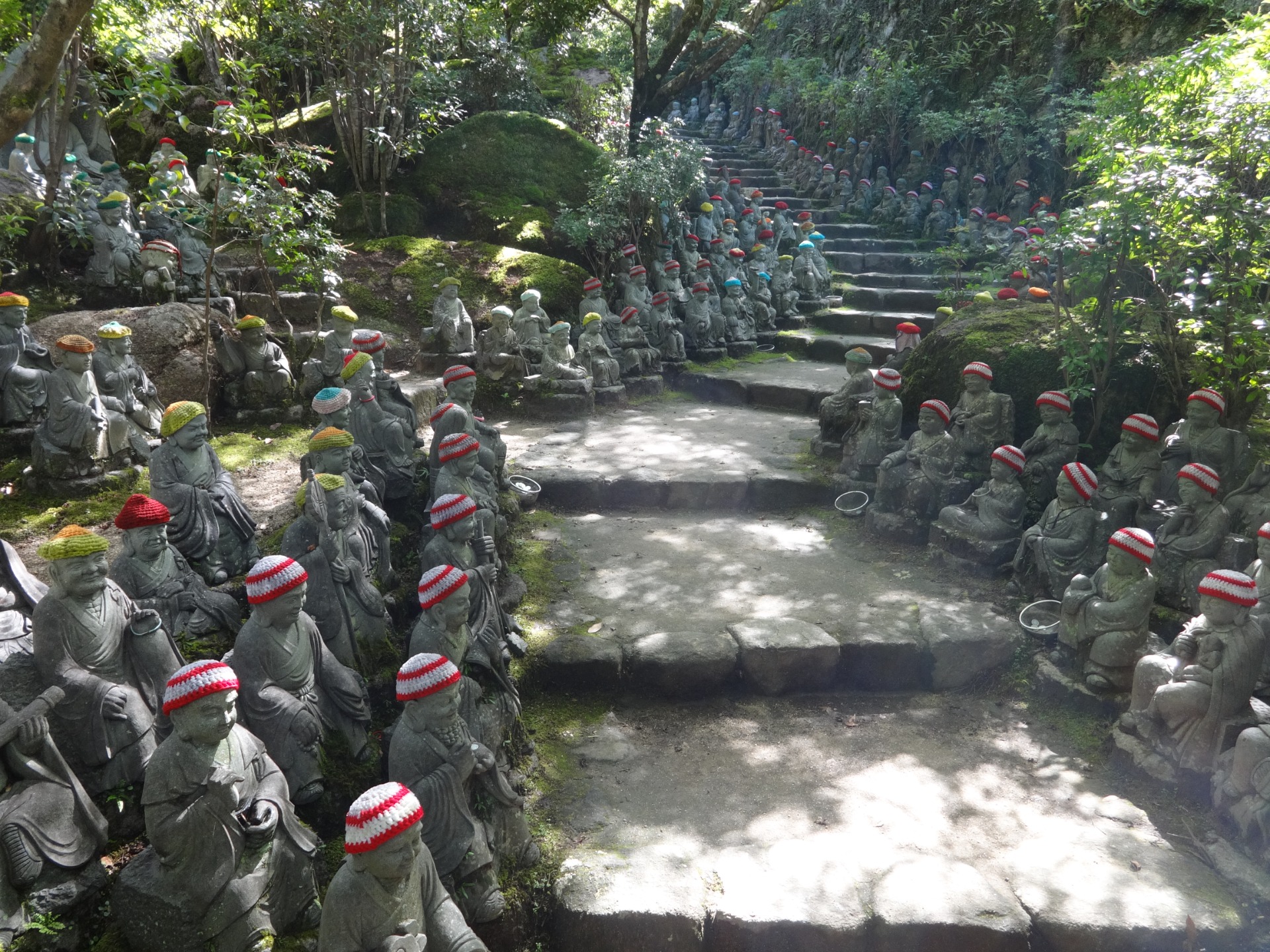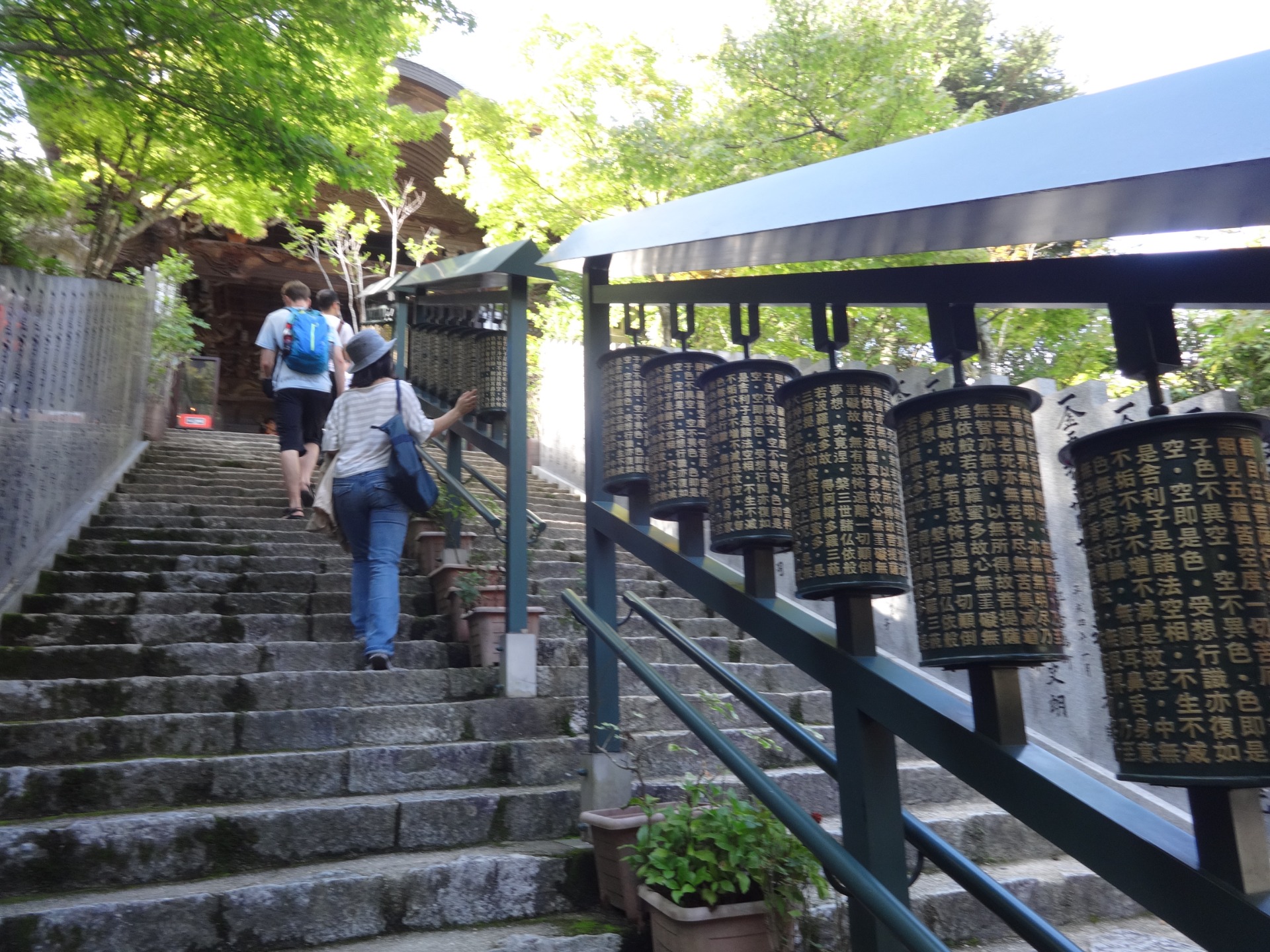 Podél schodů k hlavnímu chrámu jsou umístěny otočné kovové válce s vyrytými buddhistickými sútrami. Pokud jimi budete otáčet při cestě nahoru, je to jako byste sútry četli a jste požehnáni i bez znalosti japonštiny či sanskrtu.