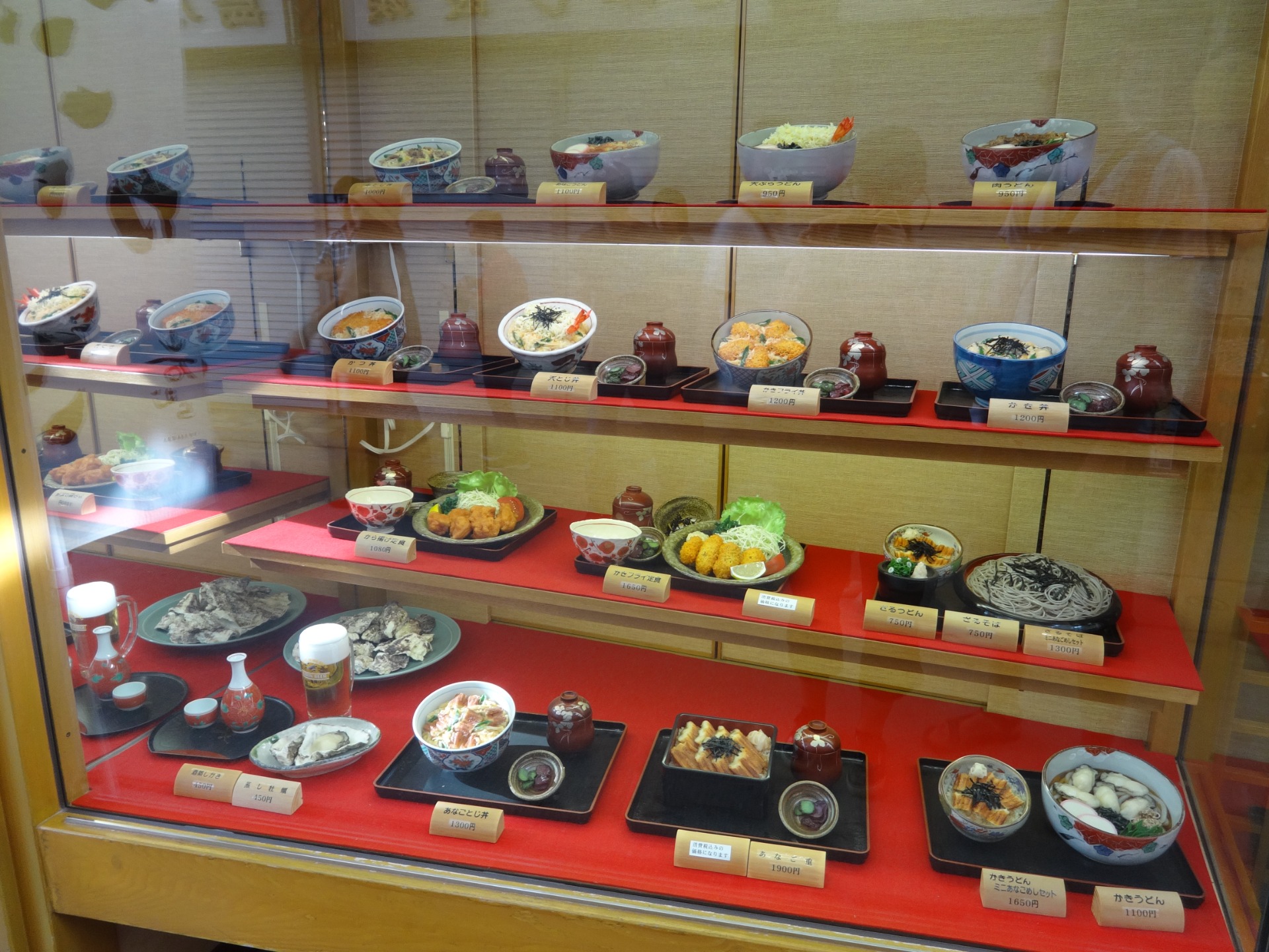 Častým zvykem japonských restaurací a bister je vystavovat nabízené jídlo v prosklené výloze. Výhody jsou nezpochybnitelné: předem víte, do čeho jdete, nepotřebujete angličtinu (hlavně oni ji teda nepotřebují) a dostanete jídlo vypadající stejně jeho plastový model.