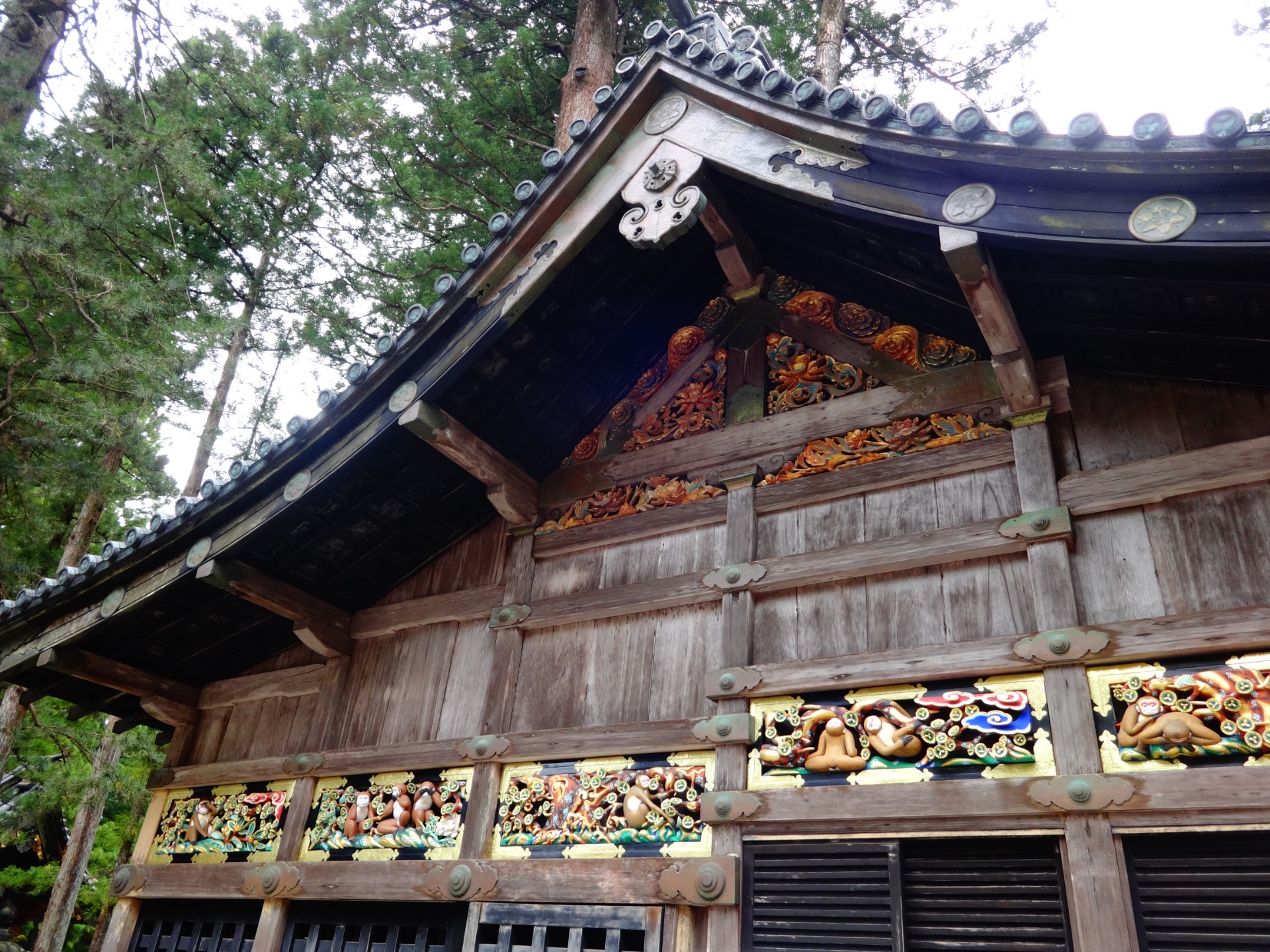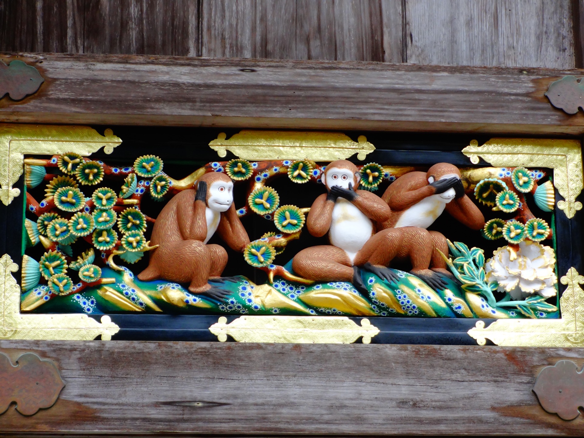 Detailní zdobení a rytiny všech budov v komplexu jsou úchvatné, ale jedna z nich ukrývá vzácný poklad – úplně první zobrazení tří moudrých opic "nevidí zlo, neslyší zlo, nemluví zlo".
