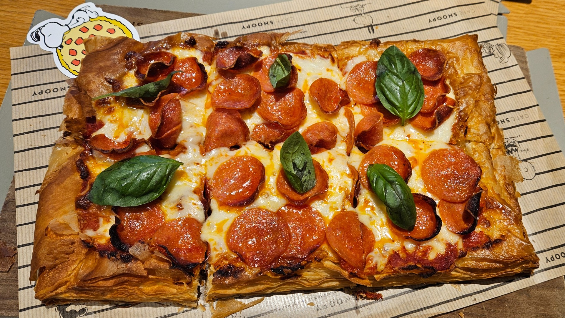 Vstupné za 19 000 wonů je celkem přepal, takže jsme si hodlali návštěvu pořádně užít a strávit zde několik hodin. Po těch nám notně vyhládlo; naštěstí můžeme vždy spoléhat na tematické korejské občerstvení, zde v podobě Snoopyho kavárny -> objednali jsme ohromnou pizzu na listovém těstě… každý jednu, což zpětně hodnotím jako přecenění velikosti našich žaludků. 😀