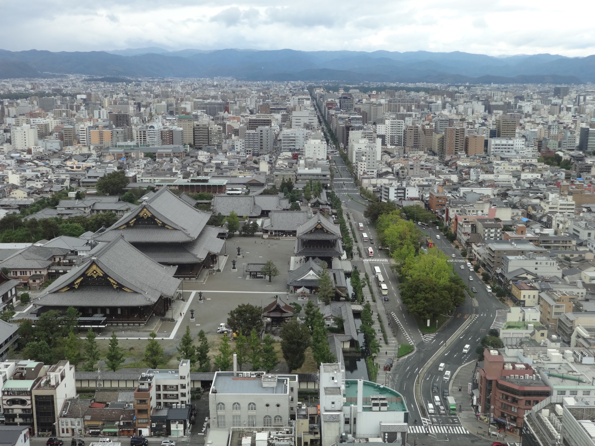 Vzhledem k pokročilému času a neutuchajícímu množství lidí jsme pro tentokrát vynechali veškeré chrámy a zamířili zpět do Kjóta. A že jsme si jej doposud pořádně neprohlídli, vystoupali jsme na Kyoto Tower kouknout na město aspoň z ptačí perspektivy.