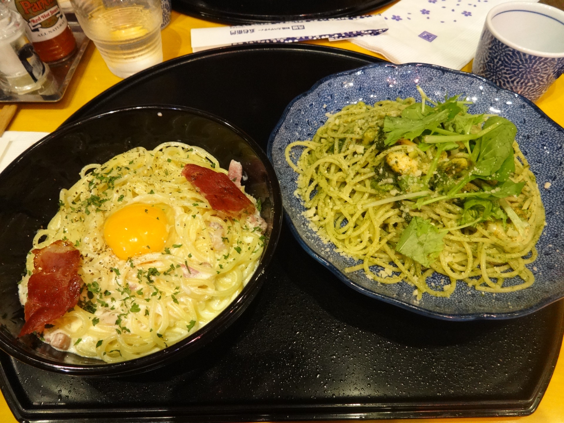 Musím uznat, že vypadaly stejně výborně jako chutnaly, ALE dostali jsme k nim horký zelený čaj (ok, dá se) a hůlky, což bylo na facepalm. Koncept nudle = hůlky v italské restauraci, byť v Japonsku, nám přišel minimálně úsměvný.